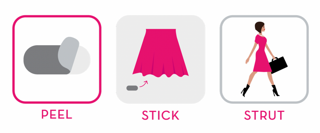 - Reusable, stick-on weights that hold hems down in the wind